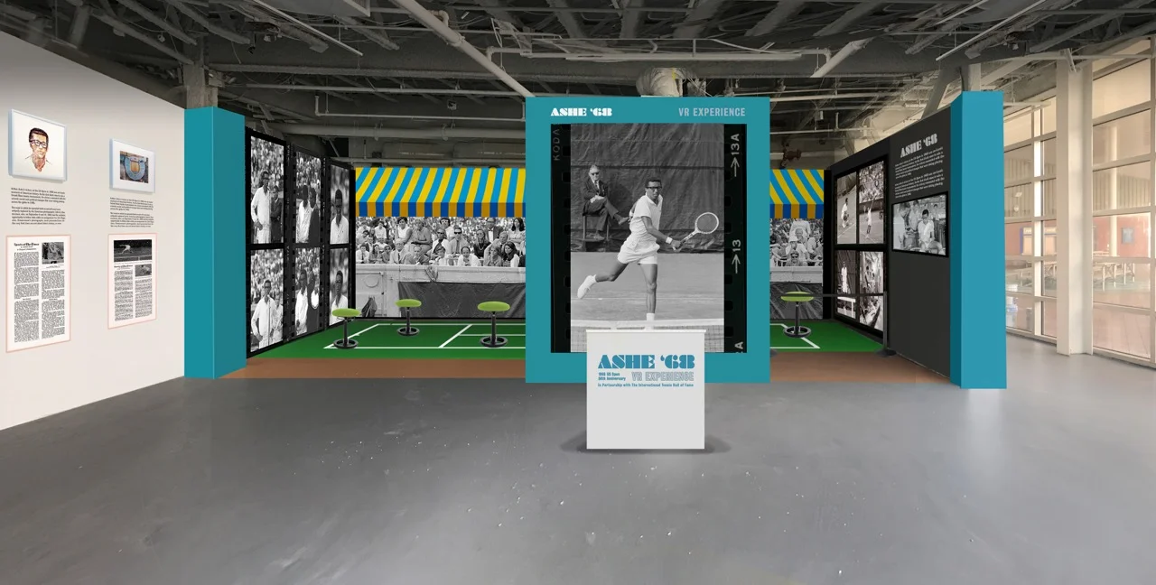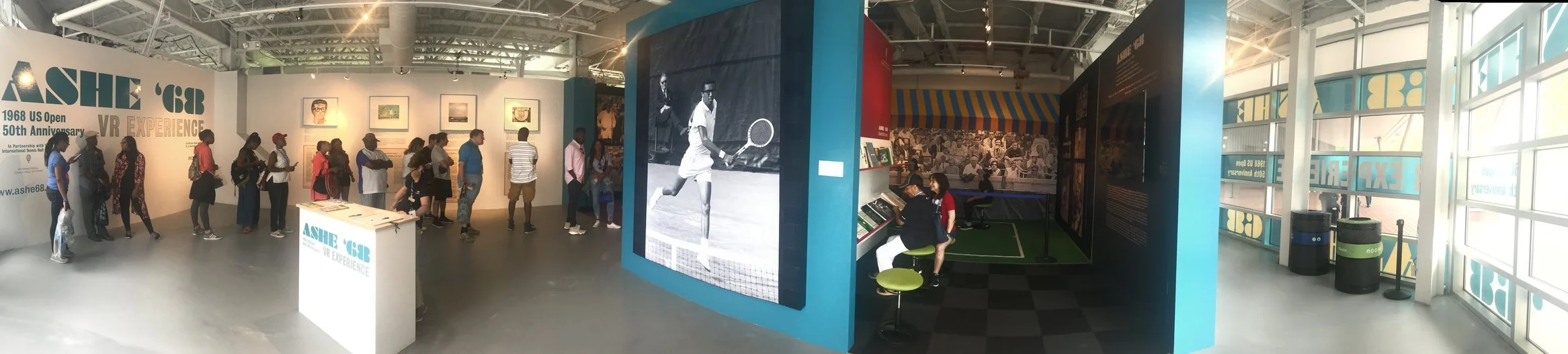 Designed by Bill Sullivan, this interactive installation/exhibition was recently exhibited at the 2018 US Open, to commemorate the 50th anniversary of Arthur Ashe’s historic 1968 US Open victory. It housed multiple headsets to view the Ashe 68 VR Experience. A dramatic and eclectic mix of large images, light boxes, video, tennis memorabilia, and vintage tennis books, the exhibition is currently being scheduled for 2019 travel.
